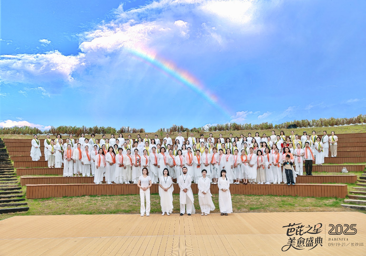 蓝天白云下的户外广场,随着彩虹的出现,上演了震撼心灵的一幕:上百位学员列阵齐整,同修古法经络功。一招一式,如古木新枝,既承载着千年的厚重底蕴,又焕发出时代的蓬勃生机。众人以身体为笔,以动作为墨,在天地间尽情挥洒,共同书写着中华传统文化“大道至简”的永恒魅力,将无形的智慧精髓化作一幅气势恢宏的集体修行画卷,最后的“齐展之声”随着长虹通贯古今。
