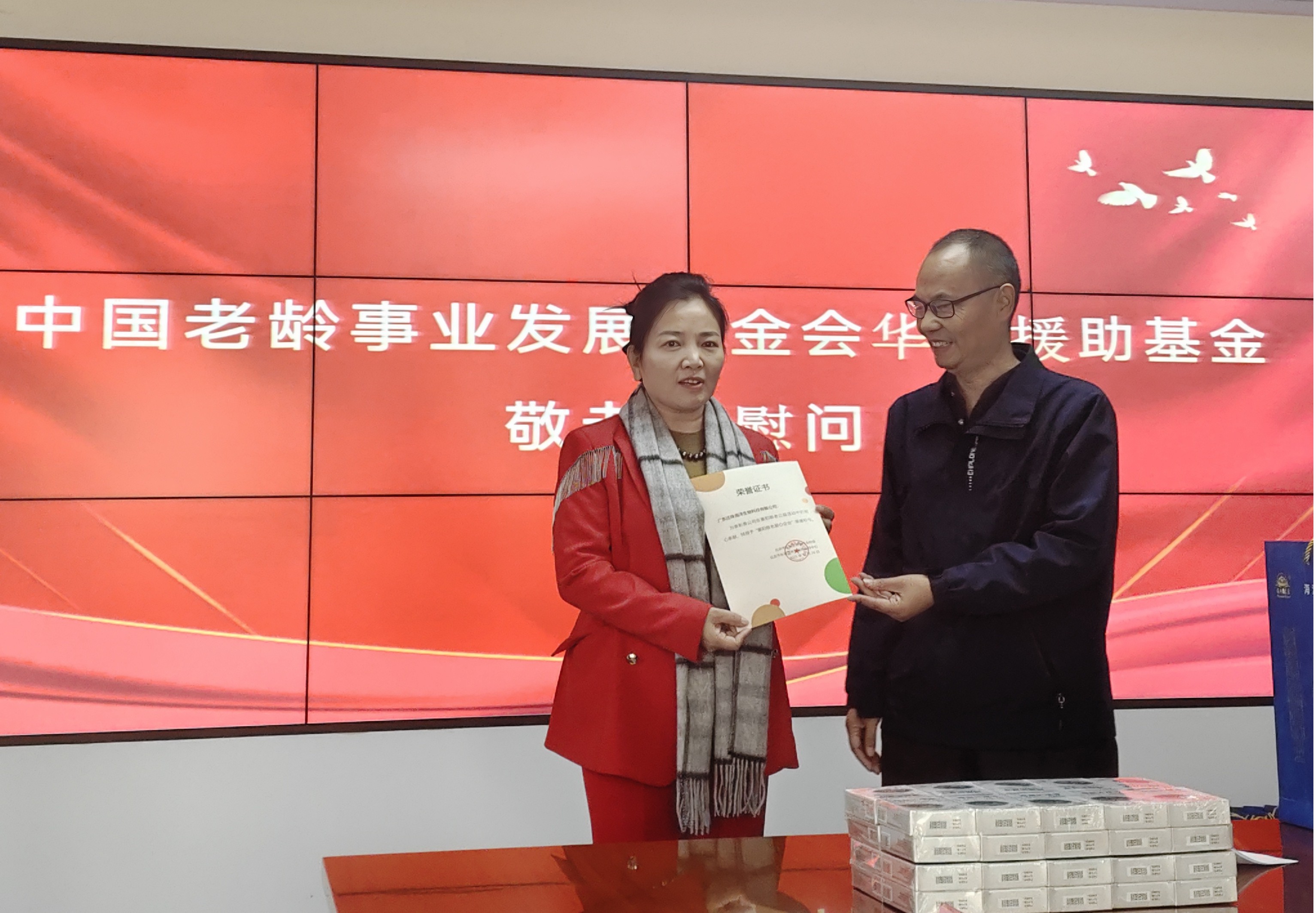 随后,东城区养老行业协会副会长卞学忠为胡险峰主任和爱心企业颁发了荣誉证书,感谢华英援助基金的公益引领让爱心企业为老人们送来了健康和快乐。感谢企业家的爱心奉献!
