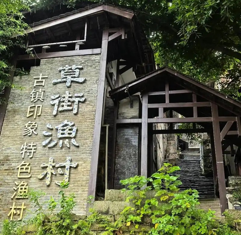 草街渔村,紧邻重庆北碚区,在G75兰海高速草街互通交叉口南300米处,刚下高速就能望见远处的草街电站。