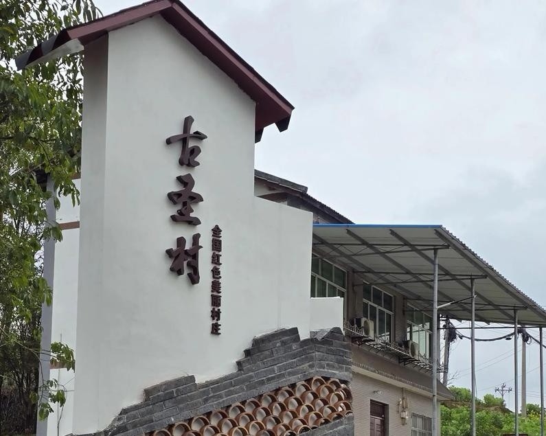 临走时,研学中心门口 “红韵古圣” 的木牌泛着暖光——这抹红,早已揉进村庄建设的肌理,成了传承里的一抹亮色。