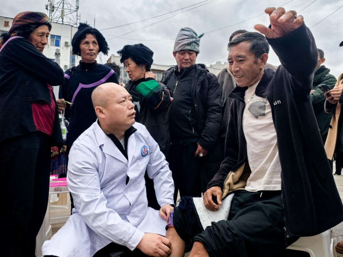 在美姑美美广场义诊现场人头攒动,医疗团队一落座便被前来求医问药的群众层层围住,专家们耐心细致地为每一位居民诊疗,在长达数小时的义诊中,医疗团队为50多人把脉开方,为近200人进行了针灸治疗。