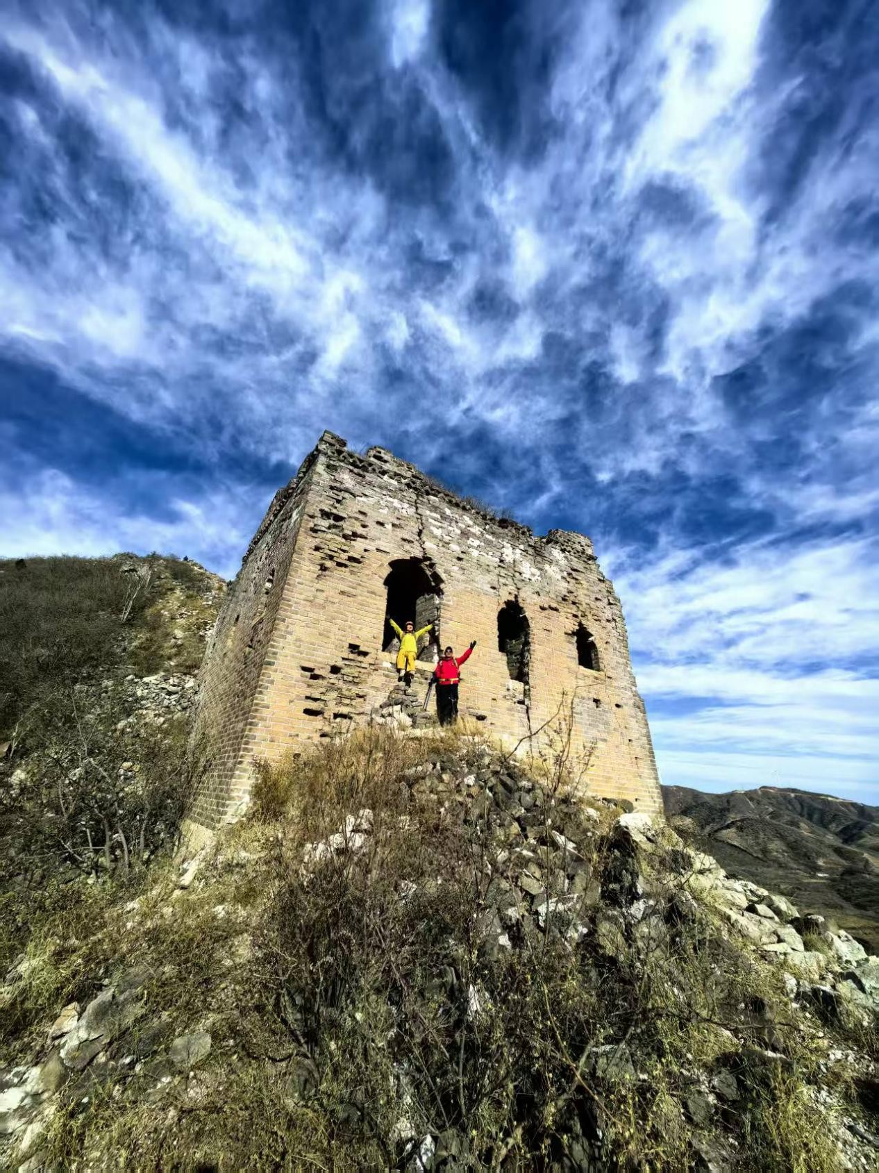 不同于往日穿越的奇峰险隘、陡坡峻岭,这里的山势平缓无奇,长城两侧也无茂密森林掩映。受1976年唐山大地震影响,城墙多处坍塌成碎石堆,敌楼的券门残破、垛口残缺,墙体上还留着裂缝与风化的痕迹,但这丝毫未减驴友们的兴致——只因遇上了这般风轻云淡的好天气,连空气都透着清冽的干爽。