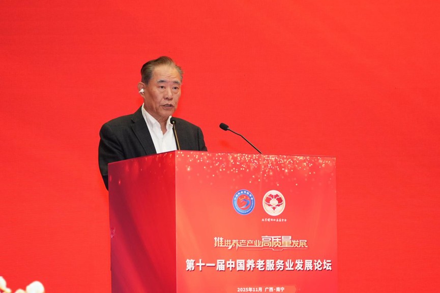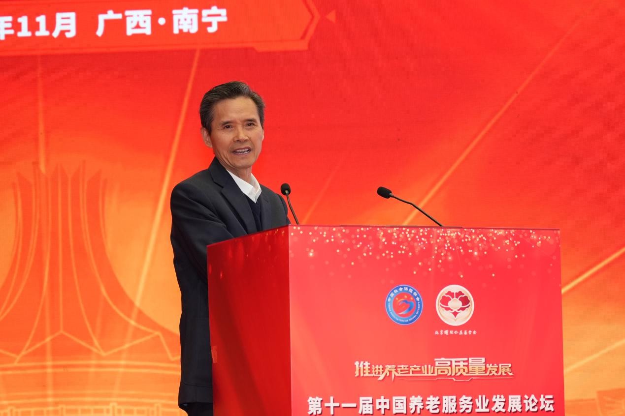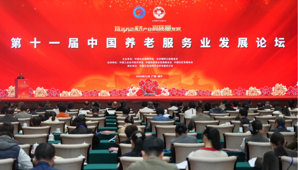 2025年11月22日,为深入贯彻党的二十届四中全会精神,促进我国养老服务产业高质量发展,由中国社会保障学会、北京曜阳公益基金会共同主办的“第十一届中国养老服务业发展论坛”在广西南宁市举行,本届论坛主题为“推进养老服务产业高质量发展”。第十届全国政协副主席张怀西为论坛发来贺信,全国政协人口资源环境委员会副主任王建军,全国人大常委会委员、中国社会保障学会会长郑功成,广西壮族自治区党委常委、南宁市委书记农生文,广西壮族自治区人民政府党组成员蓝晓,全国人大常委会原副秘书长、法律委员会原副主任委员李连宁,全国人大原内务司法委员会原副主任委员何晔晖,全国政协社会和法制委员会原副主任、全国总工会原副主席张世平,《人民日报》社原副总编辑陈俊宏,海南省政协原副主席、海南省气候治疗和康养协会会长吴岩峻,中国工业合作经济学会理事长张季,解放军总医院原院长朱士俊,中国社会保障学会养老服务分会名誉会长、北京曜阳公益基金会会长江丹,中国社会保障学会副会长、西北大学教授席恒,中国老龄事业发展基金会理事长于建伟等出席论坛。