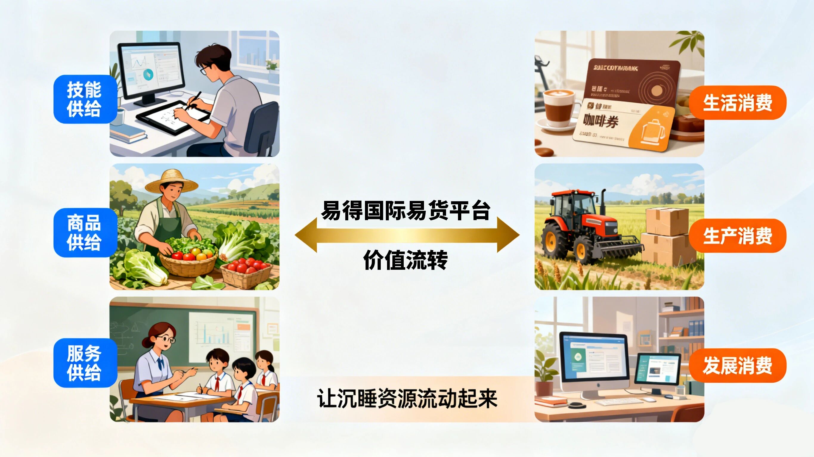 “敢消费”的关键在于消除居民对未来的不确定性担忧,教育、医疗、养老等刚性支出压力往往使居民形成“预防性储蓄”习惯。易得国际易货平台从两个维度破解这一难题:一是通过资源置换降低刚性支出压力,二是构建完善的交易保障体系增强消费信心。