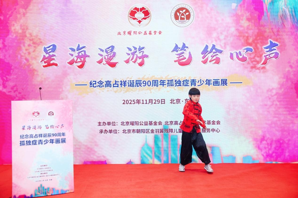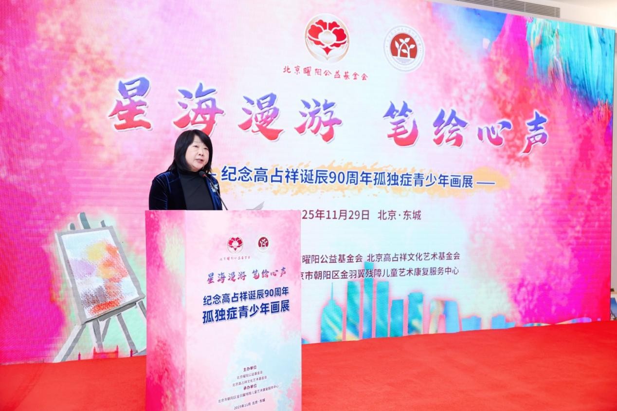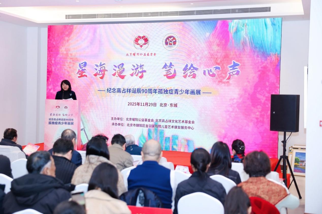 2025年11月29日,由北京曜阳公益基金会、北京高占祥文化艺术基金会联合主办,北京市朝阳区金羽翼残障儿童艺术康复服务中心承办的“星海漫游,笔绘心声”孤独症青少年画展在北京未来教育研究院举办。活动通过画作展示、公益演出与公益展卖等形式,搭建公众与孤独症群体的沟通桥梁,传承高占祥同志的文化与公益精神。