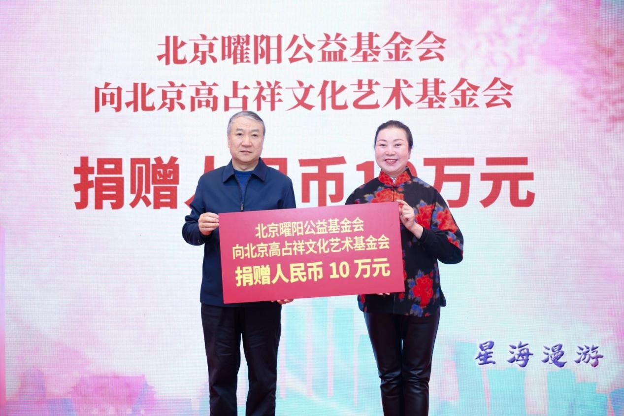 北京曜阳公益基金会向北京高占祥文化艺术基金会捐赠10万元,北京高占祥文化艺术基金会回赠《高占祥文艺集》。