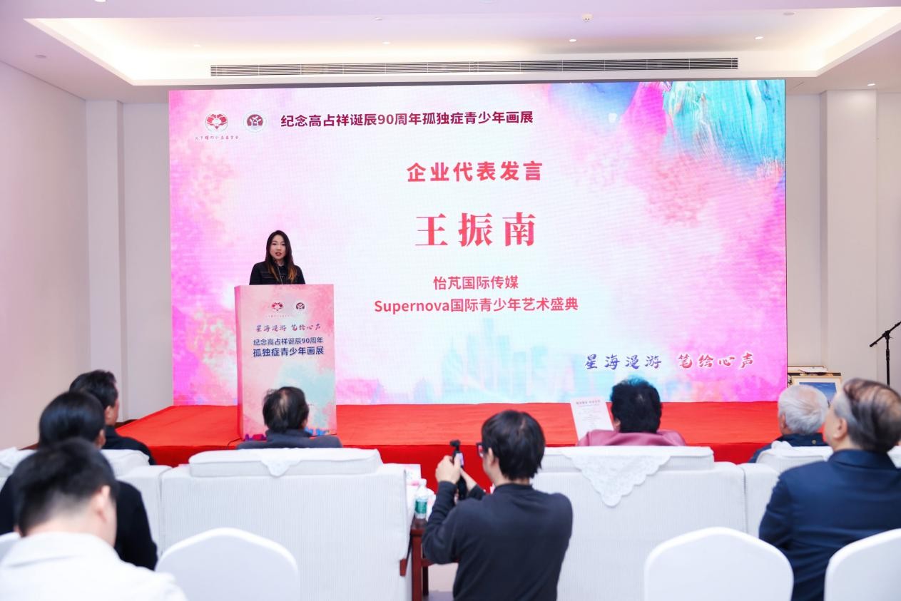 高占祥工作室主任高青在致辞中说:“今天,站在这里,我的眼眶其实一直带着温热——既有纪念我父亲高占祥诞辰90周年,也为见证这场承载着爱与希望的孤独症儿童画展启幕。作为他的女儿,我总在无数个瞬间想起父亲的模样:他伏案创作时的专注,与人谈及艺术时的眼眸发亮,更记得他常挂在嘴边的那句话:“美能润心,爱无边界。艺术不该有门槛,善意不该分远近。”如今,当这些“星星的孩子”用画笔勾勒心声,我仿佛看到父亲的理念正以最温柔的方式延续,这便是对他90周年诞辰最珍贵、最贴合他心意的纪念。”
