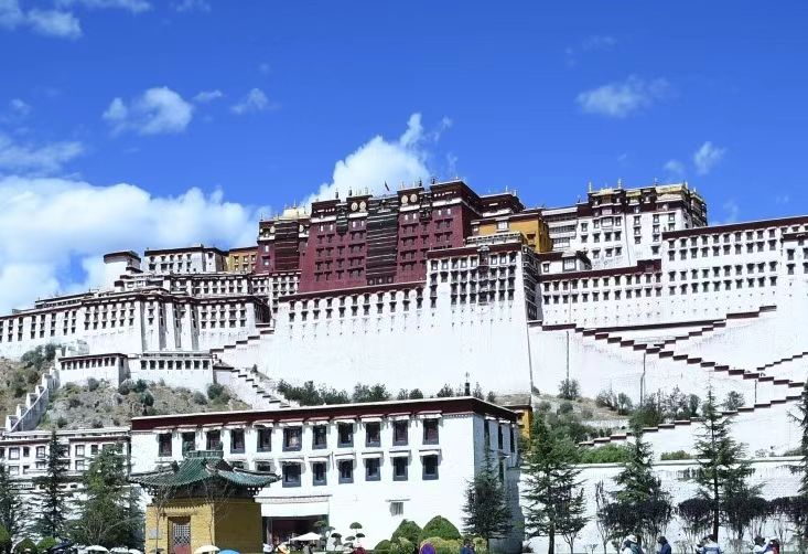 到曾经战斗生活过的地方,这里依然是蓝天白云,空气清新透彻,视野格外开阔,令人心旷神怡。故地重游,一切感到既熟悉又陌生。十月的拉萨,郊外远处是千年不化连绵起伏的雪山。城内到处新楼耸立,一条条宽敞平坦的柏油马路四通八达,马路上红绿灯闪烁,车来车往,川流不息。公路两旁,林木葱茏,百花争艳。成排成片的绿树和鲜花后面掩映着一栋栋优雅别致的藏式小洋楼,整个街景就像一个美丽的大花园,处处显露出现代化的气息。