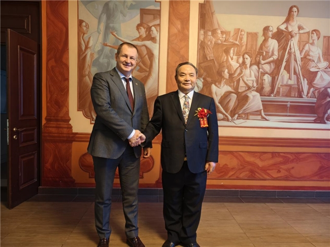 中俄文化年公务访问中莫斯科国立工艺美术学院院长谢尔盖·弗拉基米罗维奇·库拉索夫 Сергей Владимирович Курасов亲切接见罗大友院长