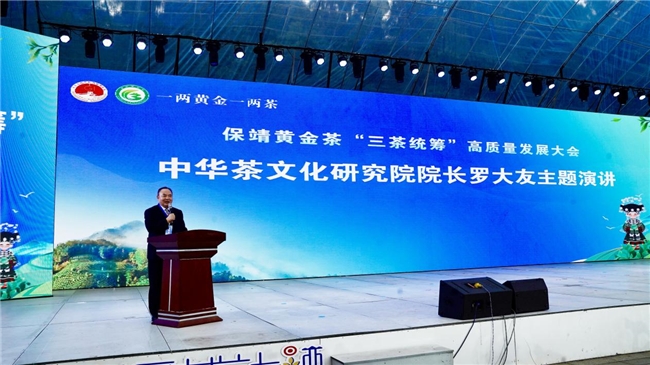 世界文化中国代表人物、国家级中国茶文化首席非遗传承人·中国茶文化研究院院长罗大友教授在保靖黄金茶“三茶统筹”高质量发展大会开幕式致辞