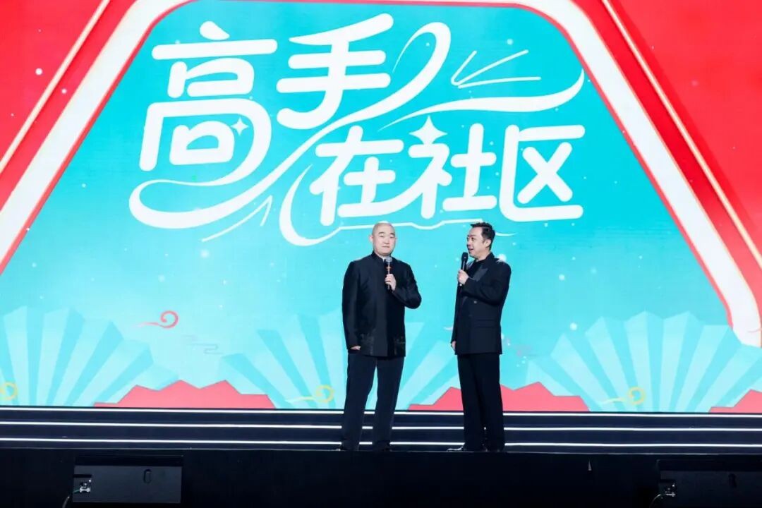 晚会上,来自全国社区的民间达人们轮番登场、各展风采。第一篇章中,开场歌《新年快乐》的欢快旋律拉开了晚会序幕,马头琴与渔歌共鸣,边疆欢舞与海岛祝福交融,尽显“全国社区一家亲”的融合底色;第二篇章里,李菁、郭天翼的相声《高手在社区》妙趣横生,武术街舞、唢呐合奏、口哨串烧等多元表演碰撞出传统与现代的火花,外卖小哥周磊的真情演唱展现了普通人的出彩人生;第三篇章,通过《社区里的暖心故事》短片、诗歌朗诵《我的社区暖时光》及大合唱《写故事的人》,细腻呈现了邻里互助、守护空巢老人的温情瞬间,让“烟火气”与“邻里情”交织成社区最暖的底色;第四篇章中,祖孙对话《南昌》传递红色传承,白雪演唱的《丝路新绿》意境悠远,百位社区书记联唱《相亲相爱》将晚会推向高潮,凝聚起“家国同心”的磅礴力量。