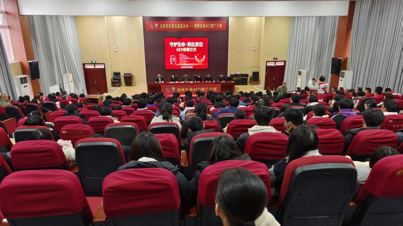 2025年12月26日,在革命老区赤水市天台镇赤水市中等职业学校大礼堂,举办了“关爱生命救在身边”、“把握白金十分钟创造生命奇迹”的自动体外除颤仪(AED)捐赠和教学活动。中华网公益频道、北京市众安公益基金会、北京白金十分钟时效应急技术研究院及白金十分钟全国自救互救志愿服务联盟、赤水市红十字会、天台镇领导、赤水市中等职业学校领导和师生200人参加活动。