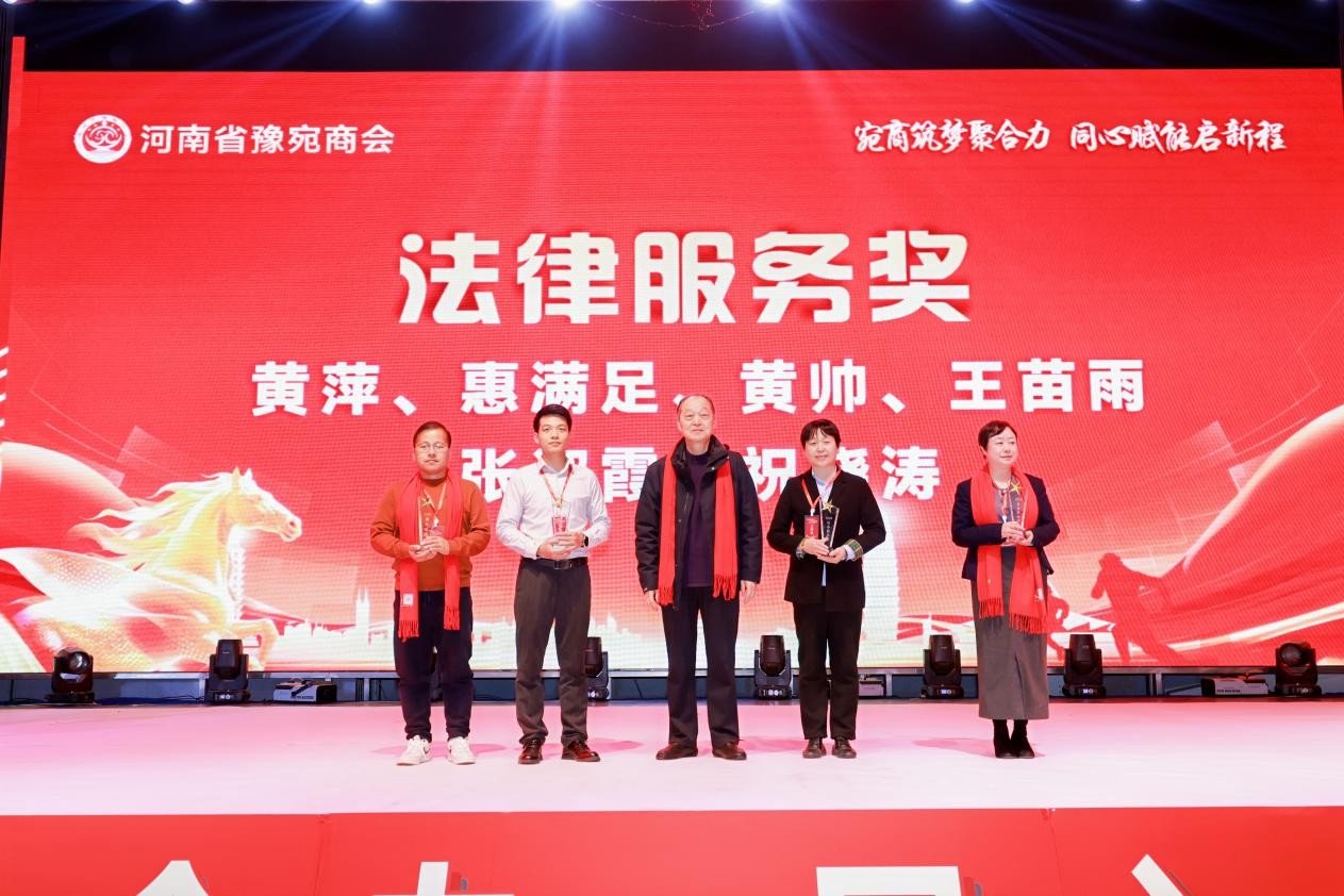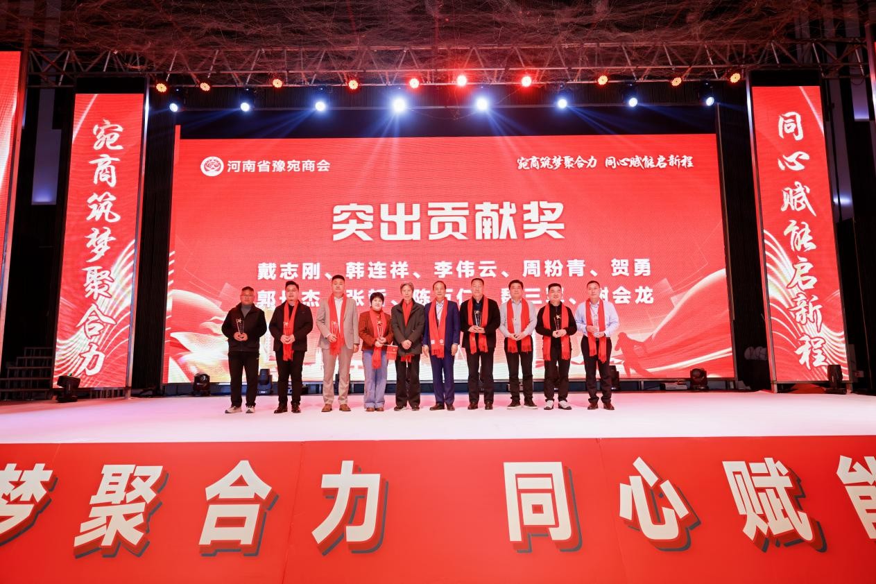 其中,河南省人民法院原副院长、豫宛商会创始会长张玉坤获终身成就奖,河南省政府原副秘书长、豫宛商会第二任会长曹国营与现任会长高鹏获评功勋人物,程志杰、戴志刚等优秀代表分别斩获各类奖项。河南省高级人民法院原院长张立勇、原河南省省长助理孙泉砀等领导担任颁奖嘉宾,为获奖代表现场授奖,台下掌声雷动,向榜样致敬、向奋斗喝彩。