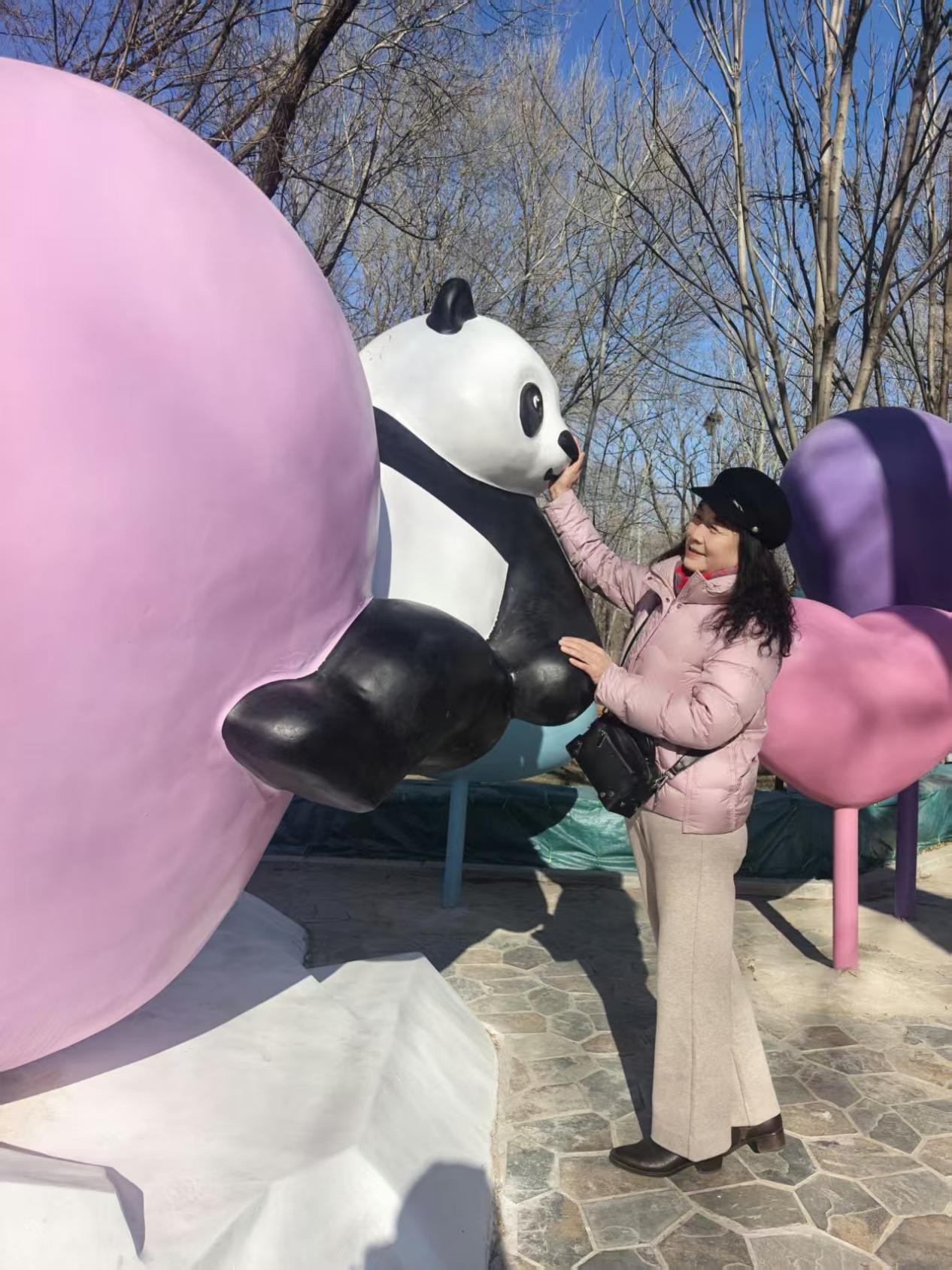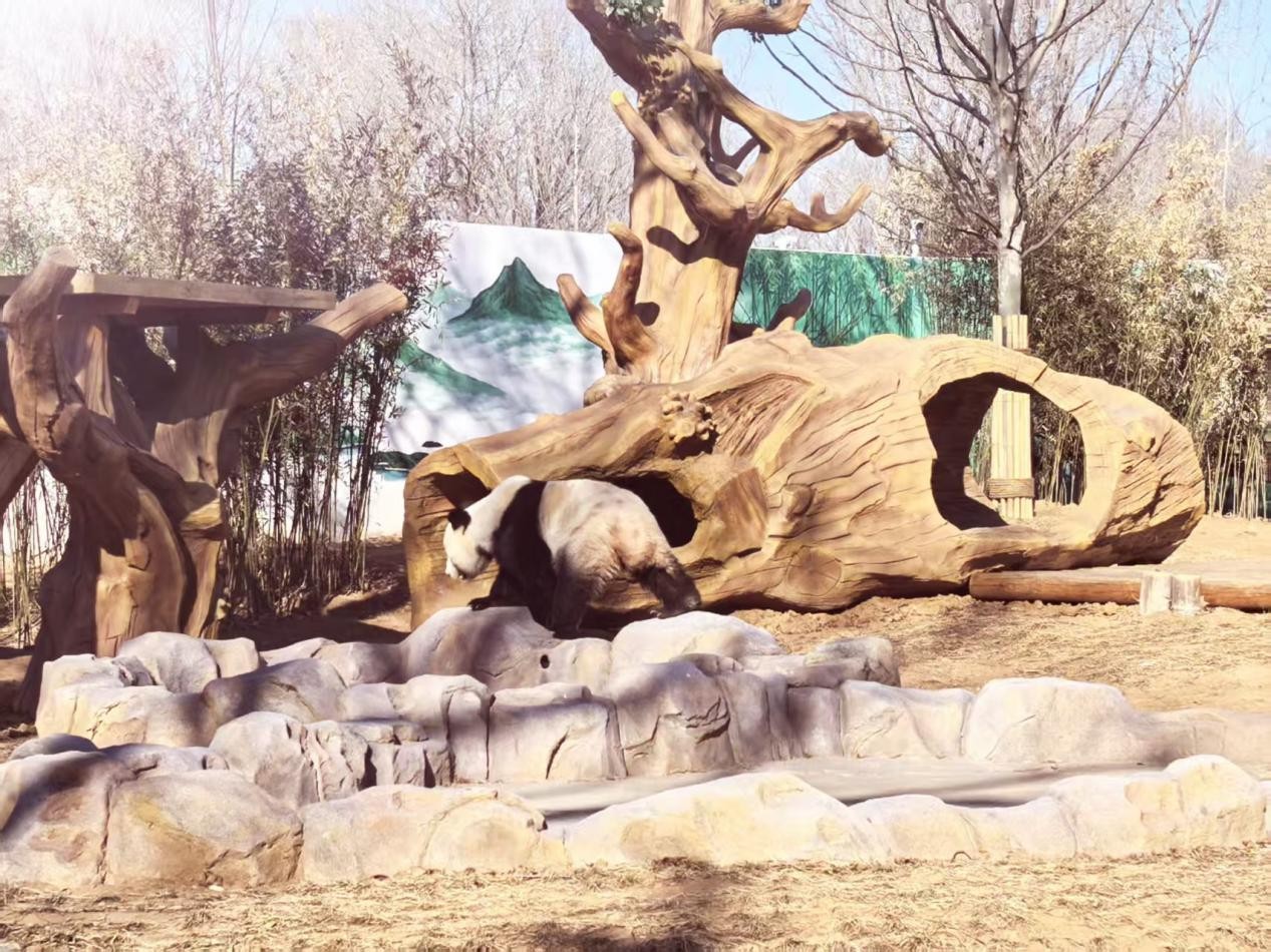 为避开元旦假期初一、初二的客流高峰,我于初三上午,携爱人、女儿、女婿与外孙女一同自驾入园。全程顺着孩子的兴致缓步慢行,先到猴区,与十余种形态各异的猴群、猩猩、山魈等嬉闹互动;隔着室内观景玻璃,与身躯庞然的大象、犀牛静静对视;坐在车内近距离观望,看狮子、老虎、黑熊、野狼、斑鬣狗们或卧或憩,慵懒自在;又与温顺的骆驼、长颈鹿、斑马、角马、梅花鹿、野牛、野驴、野马、鸵鸟和火烈鸟们不期而遇,倍感亲切。此行的重头戏,当属新建落成的熊猫馆。许是国宝初至的新鲜劲儿,这里成了游客的必打卡地,远远便望见馆外人头攒动,我们排队半小时,方才得以入内。