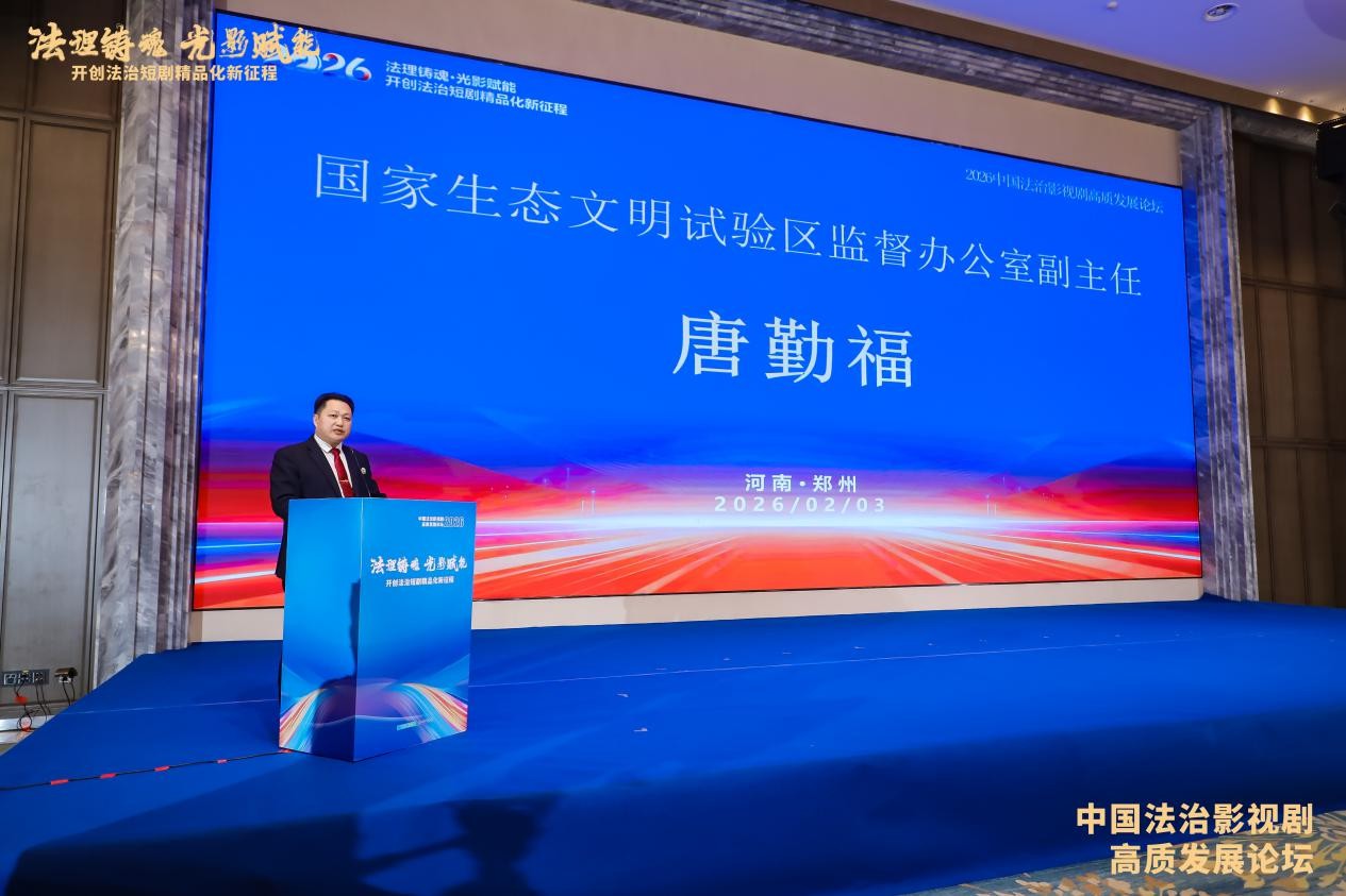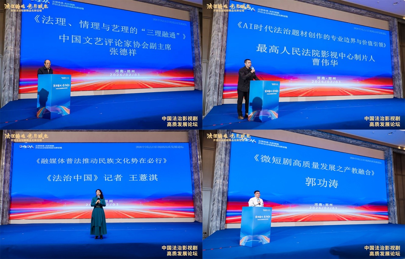2026年2月3日,“2026中国法治影视剧高质量发展论坛”在河南郑州隆重举行。本次论坛由《法治中国》频道与中国智慧工程研究会智慧文化应用专委会联合主办,中广融投(河南)数字科技有限公司、中鼎文投(河南)文化传播有限公司、北京东方时空文化产业有限公司、璇玑(北京)文化有限公司等多家单位联合承办,以“法理铸魂·光影赋能——开创法治短剧精品化新征程”为主题,汇聚国家及省级政法机关相关负责人、文艺界专家、影视行业精英、法学界代表等300余人,共商法治影视剧高质量发展路径,为“十五五”期间法治文化建设注入新动能。 立足时代使命,搭建法治文化传播高端平台。