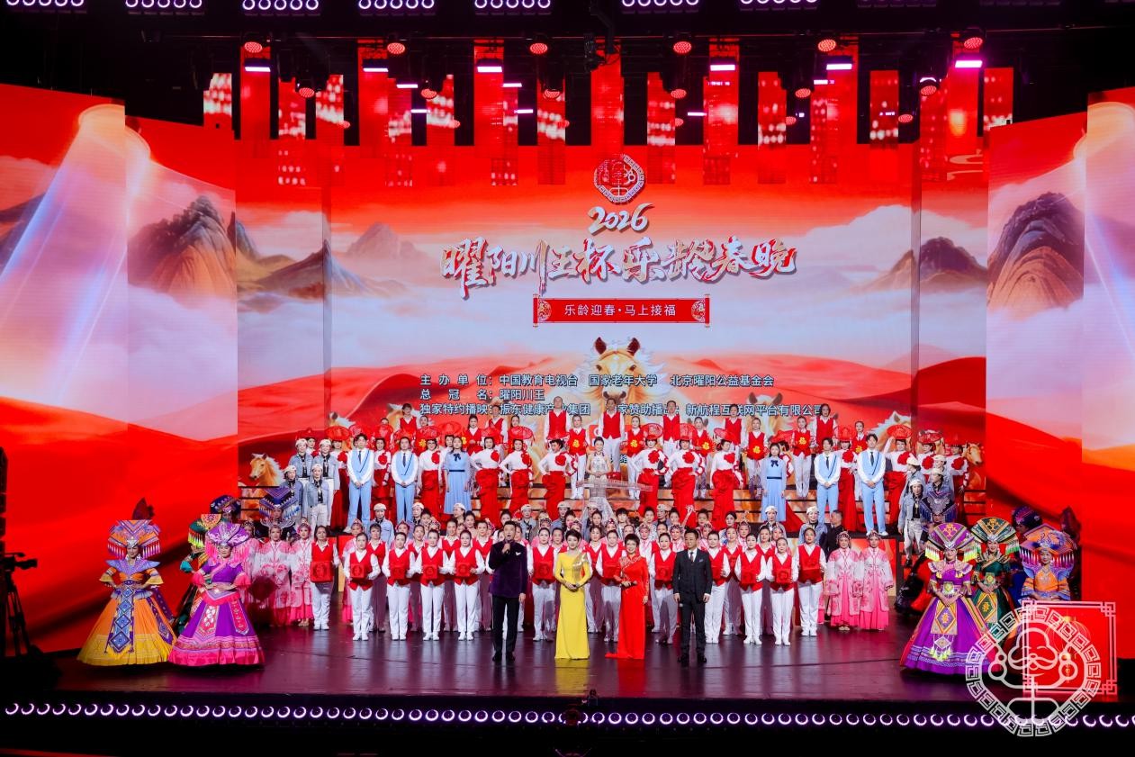 2026年2月4日(立春),一场为中国老年群体专属打造的大型文艺盛会——曜阳川王杯《乐龄春晚》,在北京世纪剧院圆满礼成。本次晚会由中国教育电视台、国家老年大学、北京曜阳公益基金会联合主办,并在快手平台进行独家网络直播。截至目前,《乐龄春晚》相关热门话题传播超17.4亿人次:其中微博主话题#乐龄春晚 阅读量6.0亿人次;抖音主话题#乐龄春晚 播放量4.0亿次;快手主话题#乐龄春晚 播放量7.3亿次,小红书主话题#乐龄春晚 浏览量10.4万次。直播时段内晚会收获各级网络媒体报道238条,多平台直播累计传播互动1291.1万人次,参与晚会内容分发及宣传推广的各新媒体平台账号累计覆盖网络用户超1.1亿人次。晚会嘉宾积极助力《乐龄春晚》宣传推广,微博、抖音、快手平台KOL覆盖粉丝量超1.1亿人。