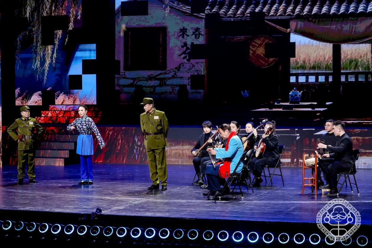 现代京剧《沙家浜》选段《智斗》堪称经典再造,蔡明饰阿庆嫂、阎维文反串刁德一、潘长江饰胡传魁,三位艺术家默契配合,冯巩执弓京胡伴奏,唱腔韵味醇厚、表演惟妙惟肖,赢得全场阵阵喝彩。“平时都是唱歌,这次反串刁德一,对我来说是个不小的挑战!”阎维文笑着说,“但乐龄春晚就是要打破常规,怎么开心怎么来,能让观众们看得过瘾,再大的挑战都值得。”冯巩则补充道:“能为这么多优秀的艺术家伴奏,还能和老朋友们一起为乐龄群体送上欢乐,这是我的荣幸。”