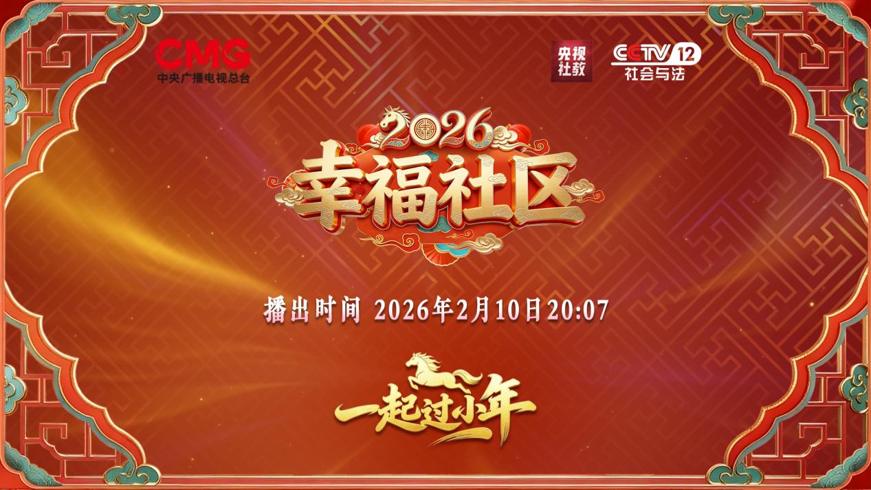 2026年2月10日20:07,中央广播电视总台社会与法频道(CCTV-12)将推出春节特别节目《2026幸福社区》。节目由总台社教节目中心与中国老龄事业发展基金会联合制作,北京曜阳公益基金会合作支持,以“一起过小年,社区大拜年”为主线,打造一场充满温情、彰显邻里情怀的新春文化盛宴。