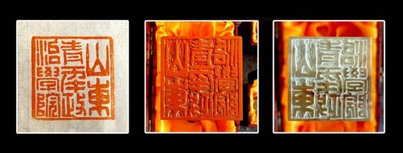 朱氏金石传承人朱德胜、朱艺轩父女为山东青年政治学院镌刻院印的印面