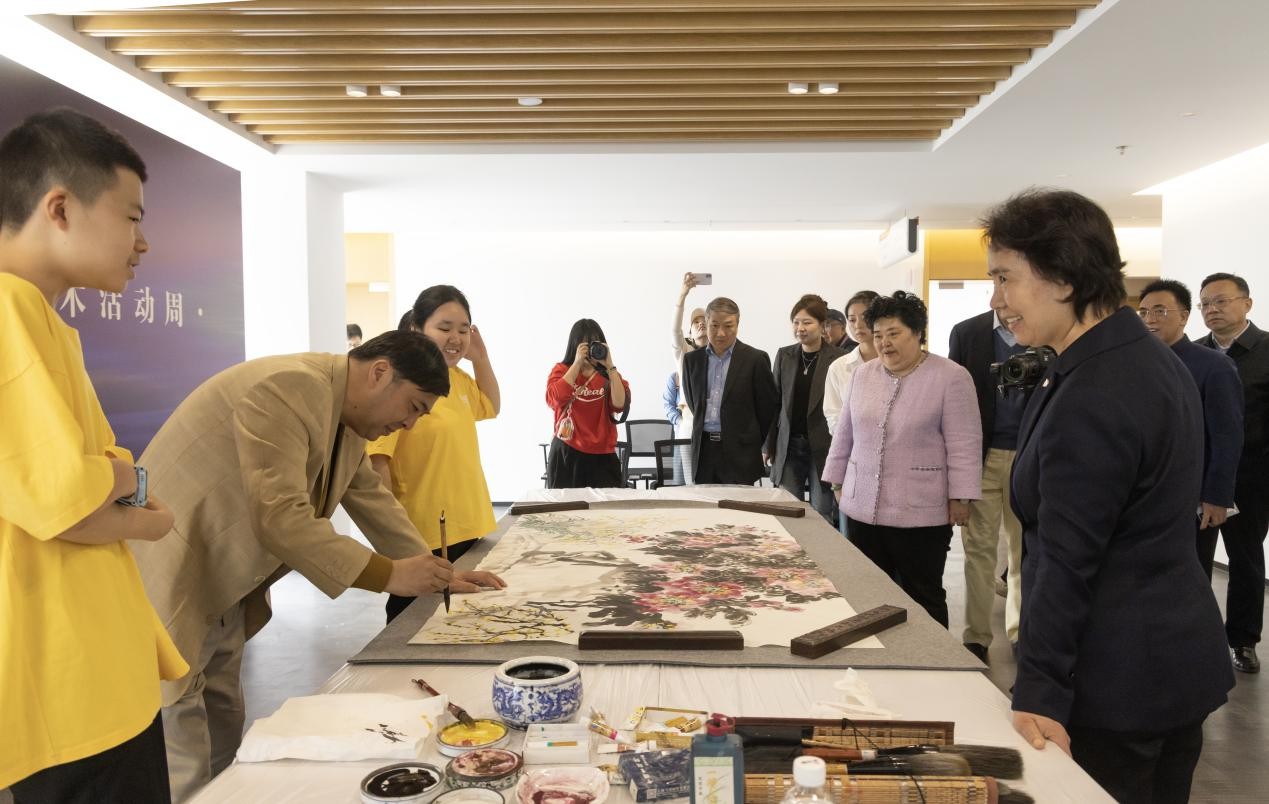 在开幕式现场,由朝阳书画院院长江源、中国画院花鸟画研究所副所长陆太林与孤独症青少年陈子欧、张爽共同创作大型书画作品《春天印象》和10幅由爱心艺术家和监制方亲笔签名的高清复制版画作品、5幅孤独症青少年绘画作品,被上海景睿营销策划股份有限公司等爱心企业和现场爱人人士竞相收藏。