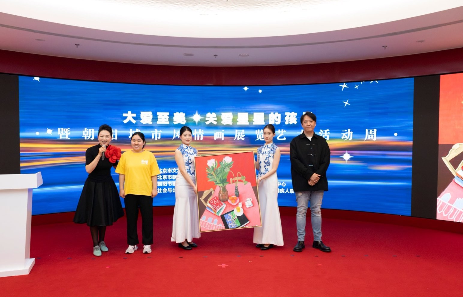 4月18日下午,由北京市文学艺术界联合会指导,朝阳区文学艺术界联合会、北京曜阳公益基金会联合主办的“大爱至美・关爱星星的孩子”艺术周暨朝阳印象城市风情画展在北京市朝阳区工人文化宫温情启幕。活动得到《社会与公益》杂志社、北京市朝阳区总工会、北京市朝阳区残疾人联合会等单位大力支持,朝阳书画院、朝阳区金羽翼残障儿童艺术康复服务中心承办。